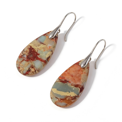 The warm, natural tones of the jasper composite complement a variety of styles, from boho and vintage to minimalist and everyday chic. The smooth finish and secure earring hooks ensure long-lasting comfort without irritation.