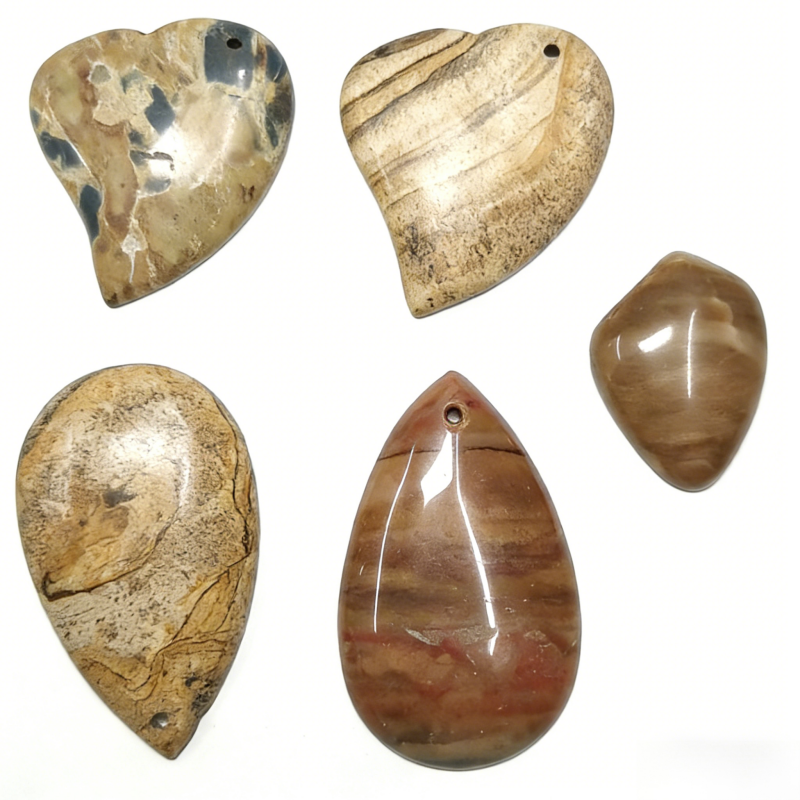 Handpicked from natural ores around the global, these pieces are crafted into heaart or teardrop pendants. Each piece showcases unique geological textures—from mottled time-worn grains to layered color gradations. The accessories are perfect for necklines, bags, and jewelry, letting natural textures enhance your fashion statement.